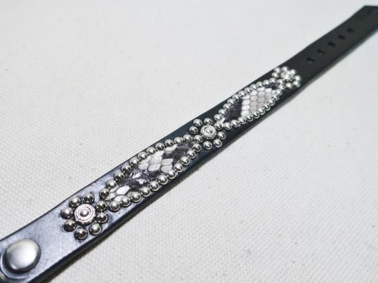 ■商品名:スタッズブレスレット/UKサドルレザー/ヘビ革