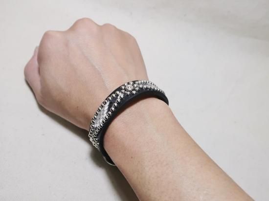 UKサドルレザーにヘビ革(ダイヤモンドパイソン)をインレイに使用したスタッズブレスレット。