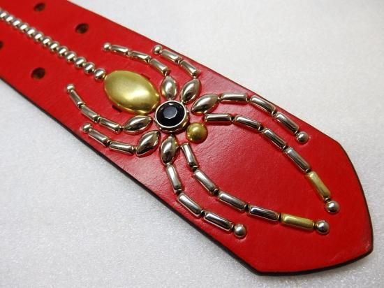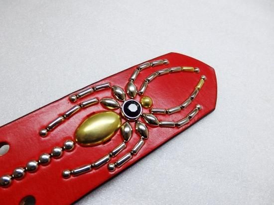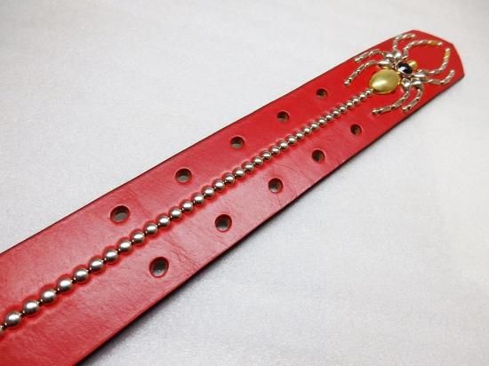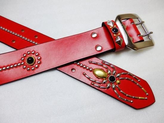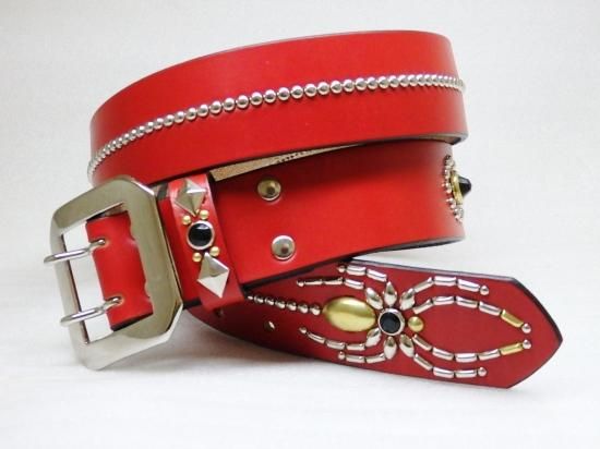 ■商品名:スパイダースタッズベルト/UKサドルレザー・RED/オーダー品