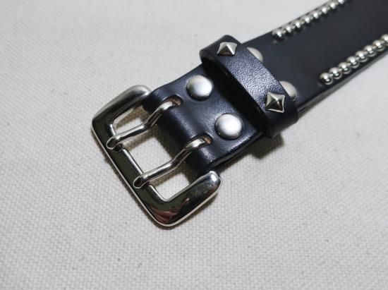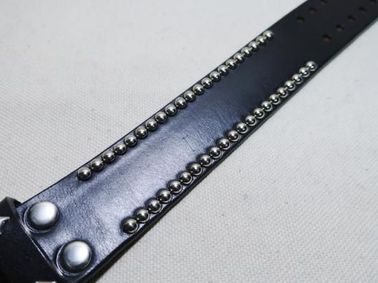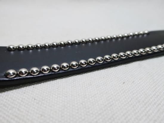 貴重なUKサドルレザーを使用し、お客様のご希望でスタッズはニッケル(銀色)を使用。
