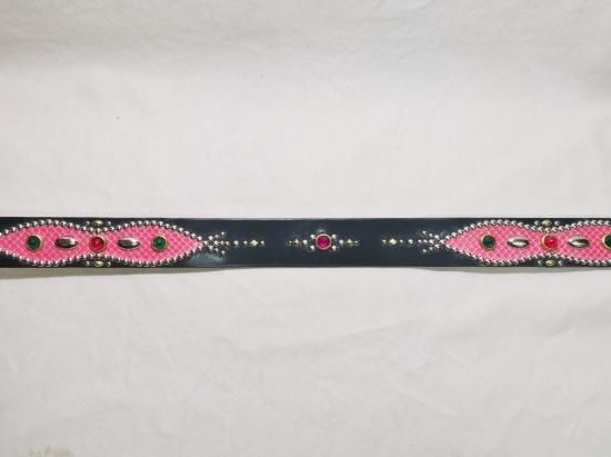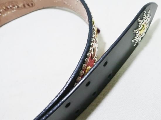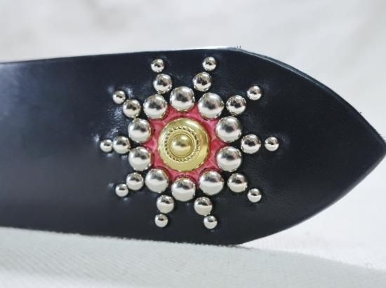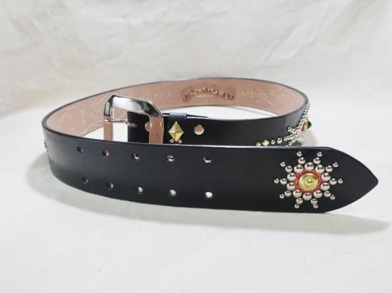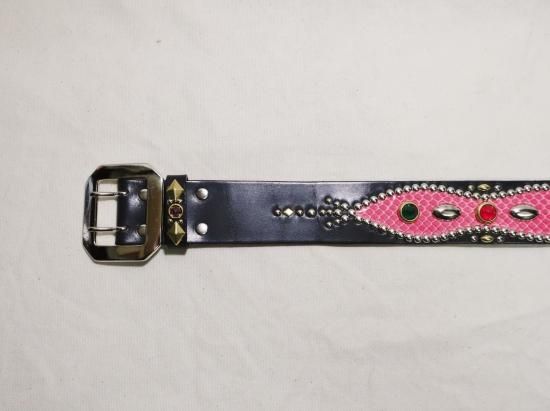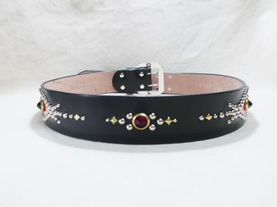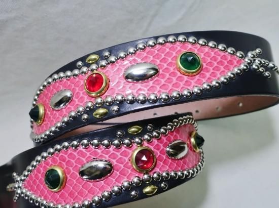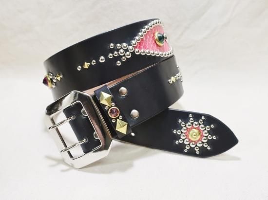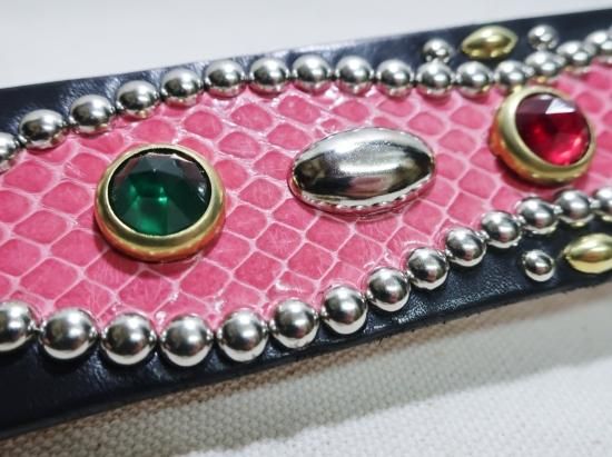 サドルレザーに、コブラ革を使用したスタッズベルト。