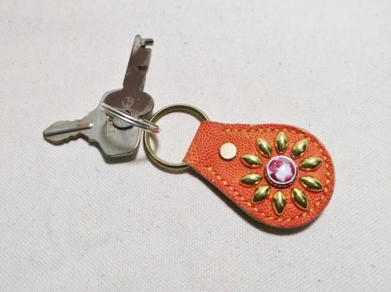 スタッズキーホルダー/エレファントレザー/ゾウ革/キーリング/キーホルダー/レザークラフト/象革/ハンドクラフト/革小物/手縫い/ハンドメイド