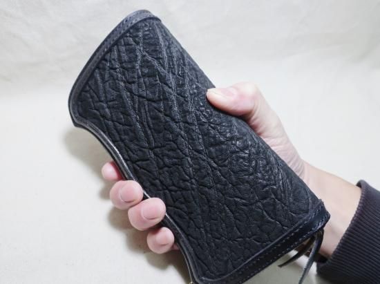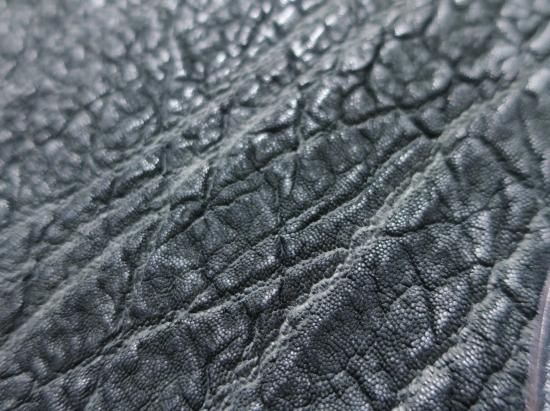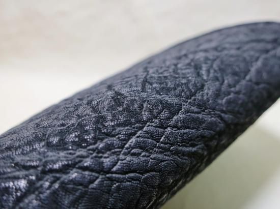 ゾウ革の特徴は、厚く丈夫で特有の大きなヒダ、シワがあり、細かい粒状が特徴で、耐久性に優れ、使うほどに独特の光沢が出て来ます。