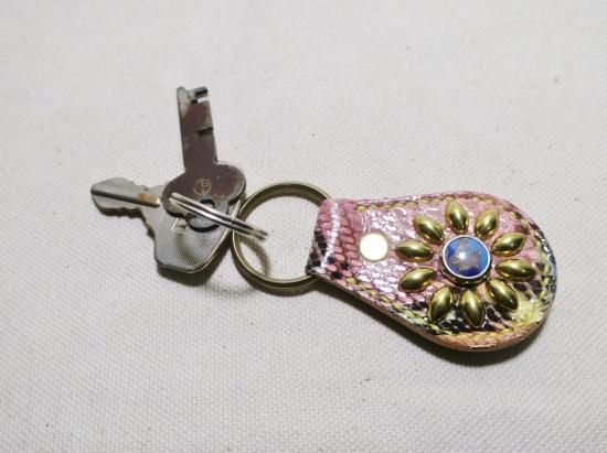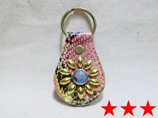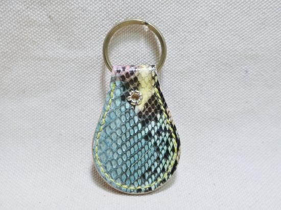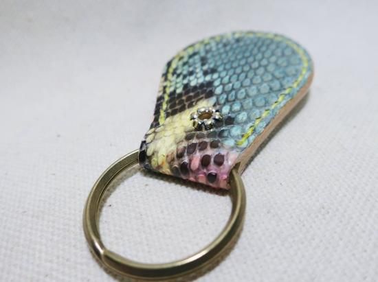 ダイヤモンドパイソン(ヘビ革)を使用したスタッズキーホルダー。