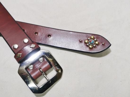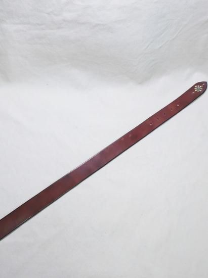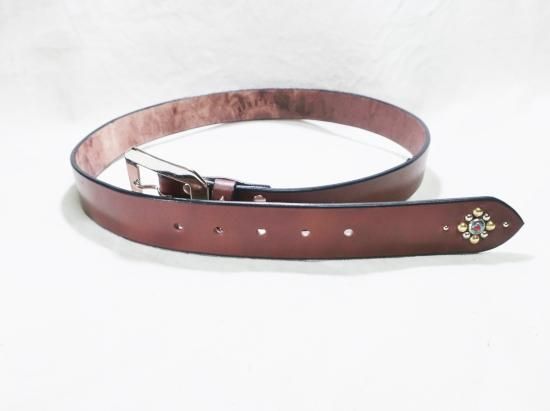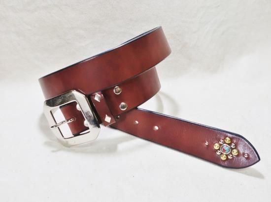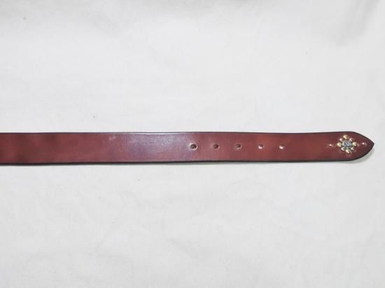サドルレザーを使用し、剣先シンプルにスタッズをせっとしたプレーンベルト。