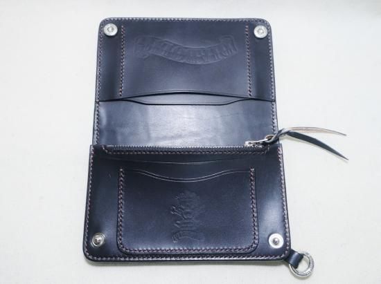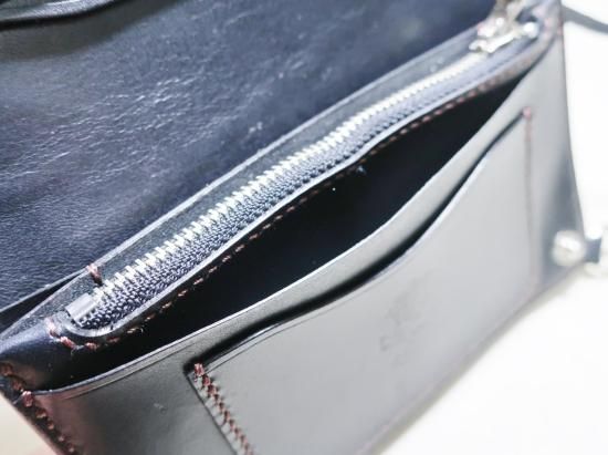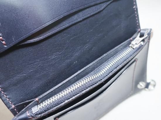 内側は、サドルレザーを使用。色合いも良く、使い込む程に、マット調から艶のある変化を楽しみながら使用出来る贅沢なウォレットに完成しました。