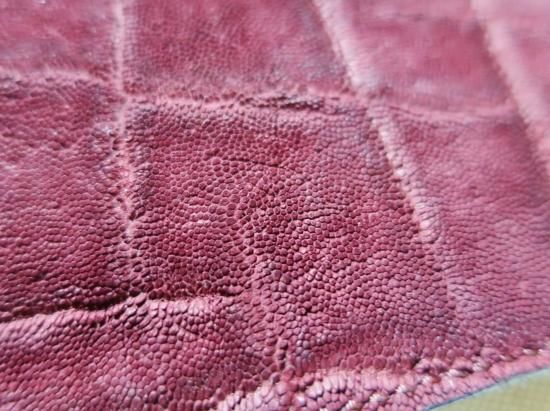 ゾウ革は厚く丈夫で特有の大きなヒダ、シワがあり、細かい粒状に隆起が特徴で、