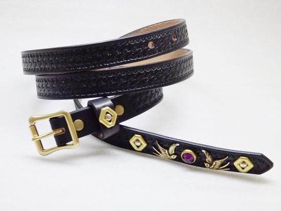 ■商品名:ナローベルト/バスケットスタンプ/ツバメ・スタッズ/オーダー品