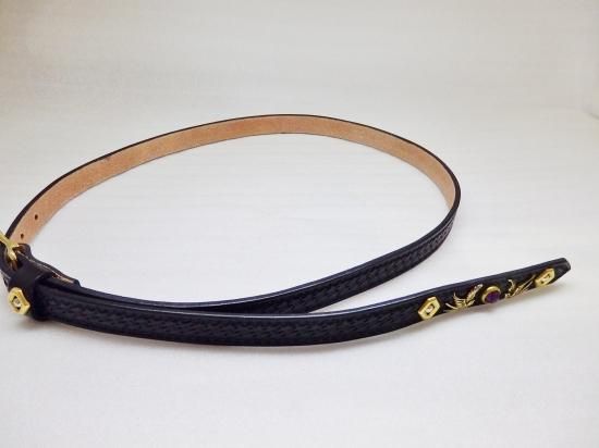 革との色合いが良く、剣先の長い部分を垂らして使うタイプで、使い込む程に経年変化して行くのが楽しみで、オーダーならではの組み合わせのナローベルトに完成しました。