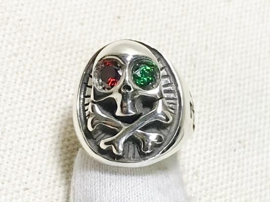 スカルクロスボーンのリングにスワロフスキーのカスタムのオーダーを頂きました。