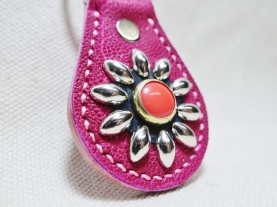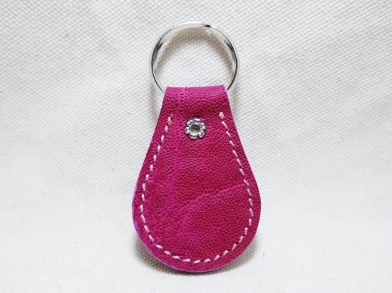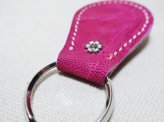 ゾウ革を使用したスタッズキーホルダー。