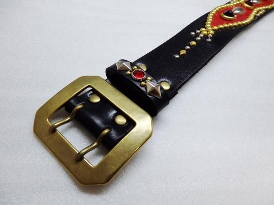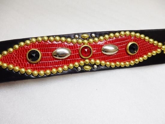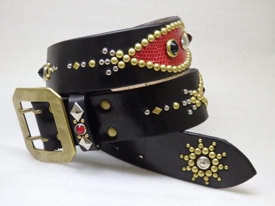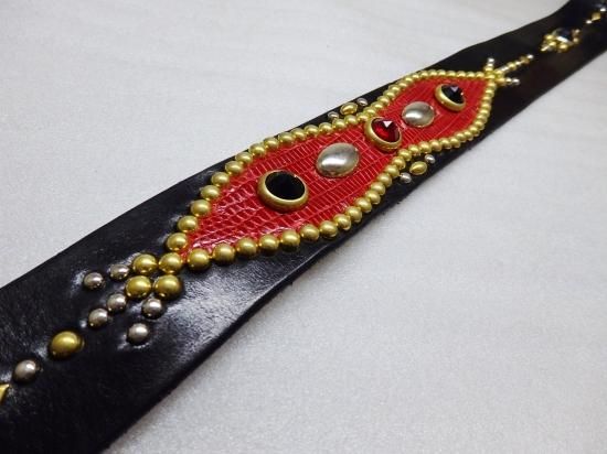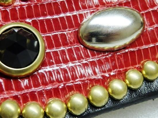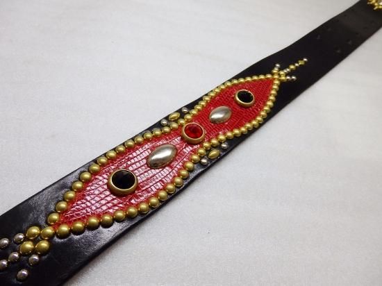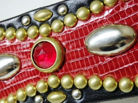 ■商品名:スタッズベルト/サドルレザー/リザード・RED/オーダー品