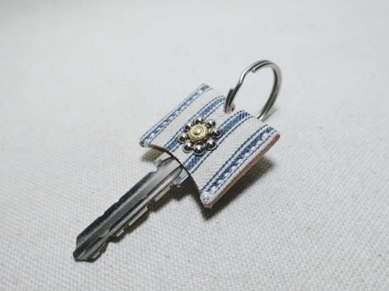 1900's〜1920'sアンティークティッキング生地を使用したスタッズキーカバー。