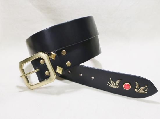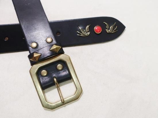 プレーンベルト/サドルレザー/スワロー・BRASS/スタッズ