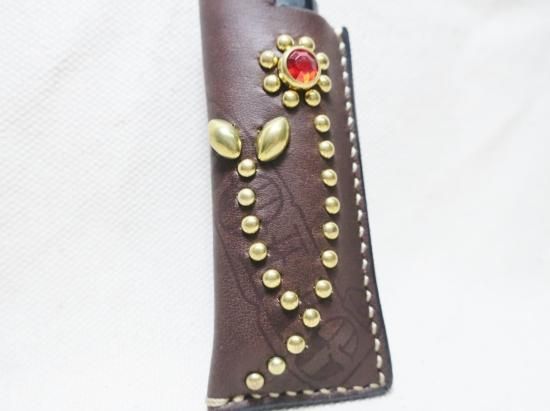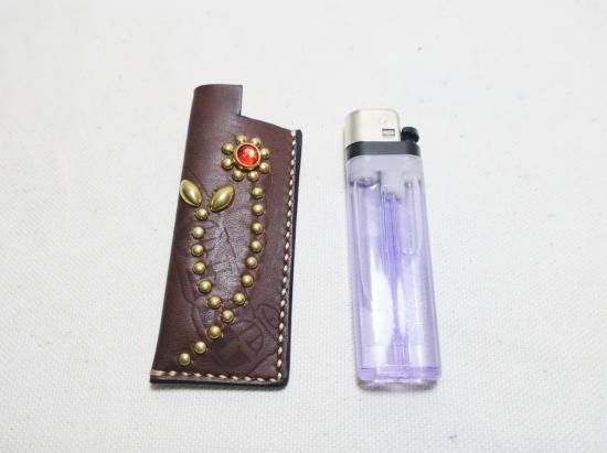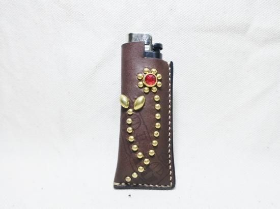 ■商品名:ライターケース/フラワースタッズ/サドルレザー
