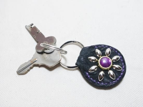 スタッズもくすみ、味わいの出るキーホルダーです。