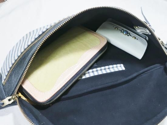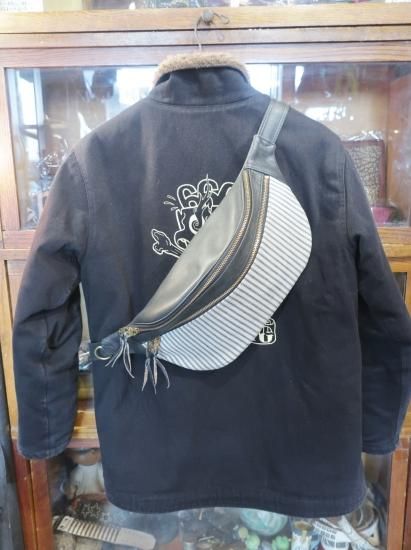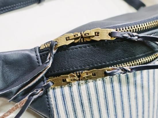 ■商品名:ボディバッグ/アンティークティッキング生地/サドルレザー