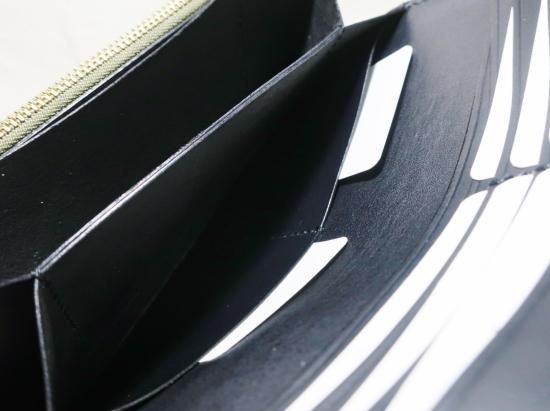 内側は、又、丸みを付けたデザインで、取り出しし易く、小銭x1、札入れx3、カード入れx12(札入れの間x2)、