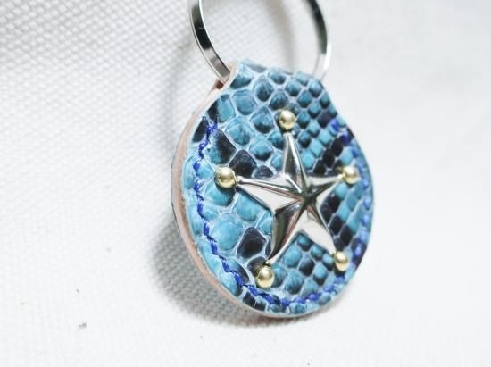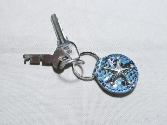 ダイヤモンドパイソン(ヘビ革)を使用したスタッズキーホルダー。