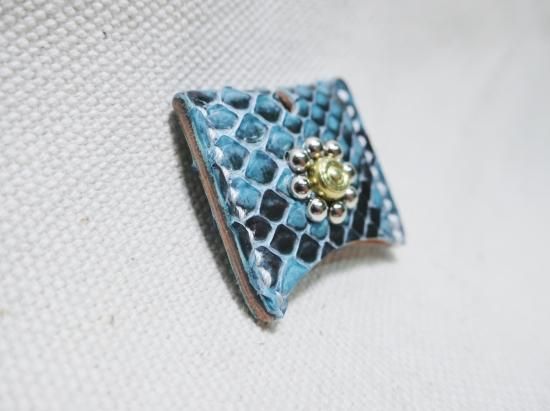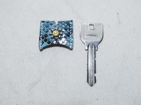 スタッズキーカバー/ヘビ革・ターコイズブルー