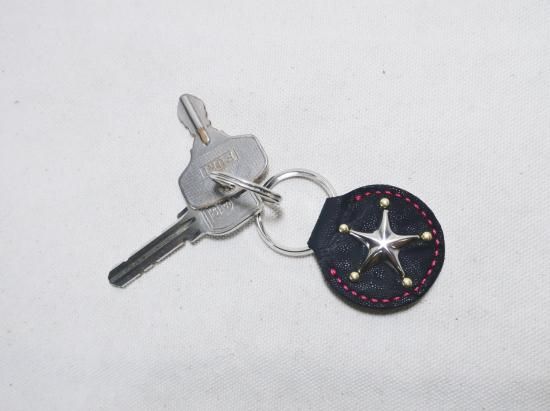 スタッズもくすみ、味わいの出るキーホルダーです。