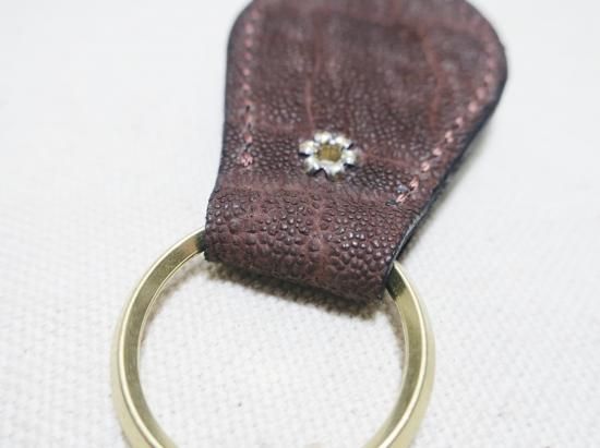 ゾウ革を使用したスタッズキーホルダー。