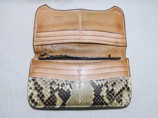 ■商品名:ダイヤモンドパイソンウォレット/サドルレザー/経年変化