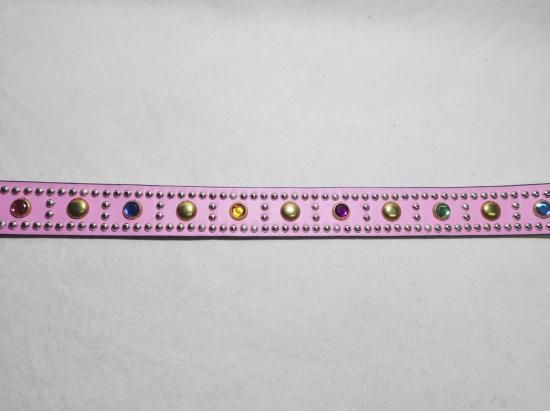 スタッズとラインストーンを肉厚のサドルレザーに、