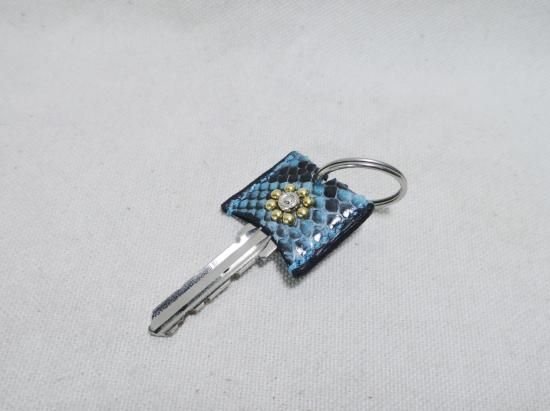 スタッズキーカバー/ヘビ革・ターコイズブルー