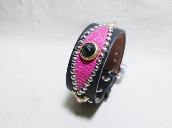 スタッズブレスレット/サドルレザー/リザード(トカゲ革)