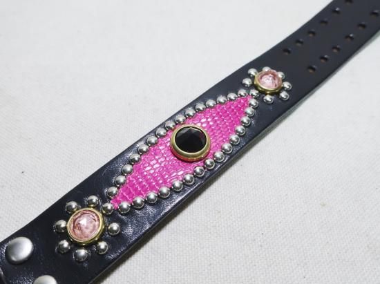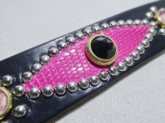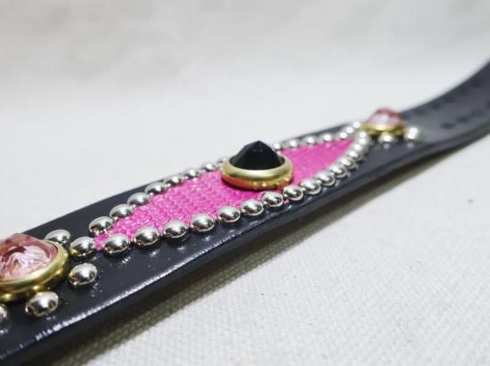 ■商品名:スタッズブレスレット/サドルレザー/リザード(トカゲ革)