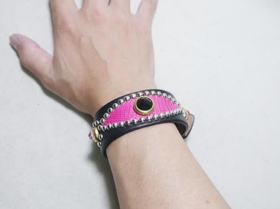 スタッズブレスレット/サドルレザー/リザード/トカゲ革ハンドクラフト/レザークラフト/ハンドメイド/革小物/レザーブレスレット