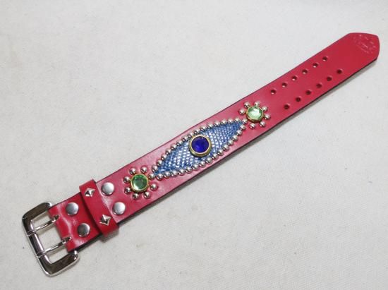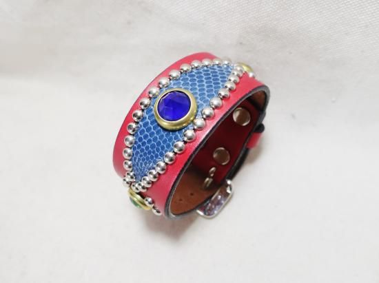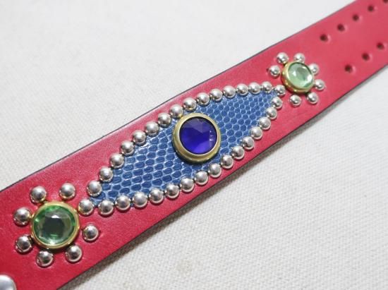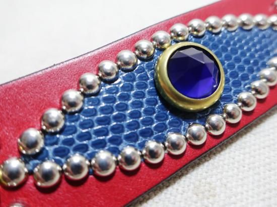 サドルレザーにリザード(トカゲ革)をインレイに使用したスタッズブレスレット。