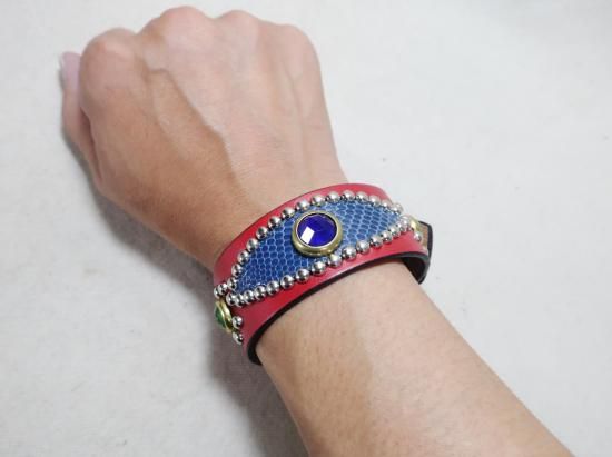 スタッズブレスレット/サドルレザー/リザード/トカゲ革ハンドクラフト/レザークラフト/レザーブレスレット/ハンドメイド/革小物