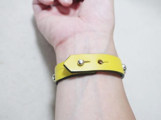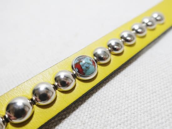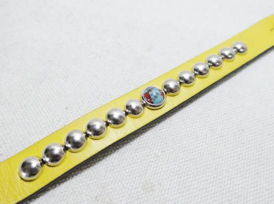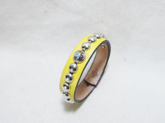 サドルレザーを使用し、シンプルにスタッズをセットしたスタッズブレスレット。