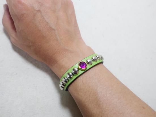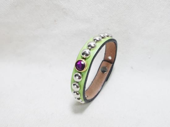 サドルレザーを使用し、シンプルにスタッズをセットしたスタッズブレスレット。