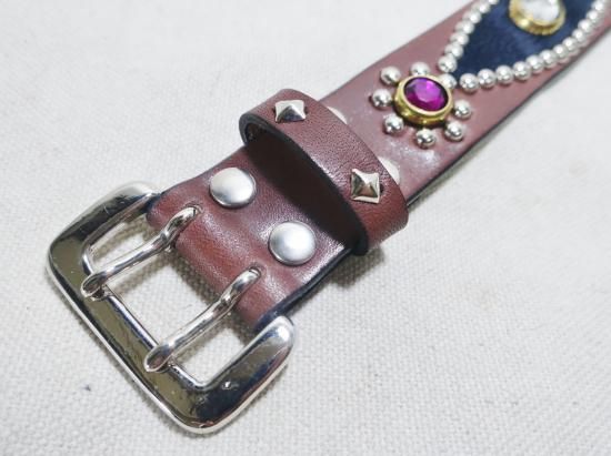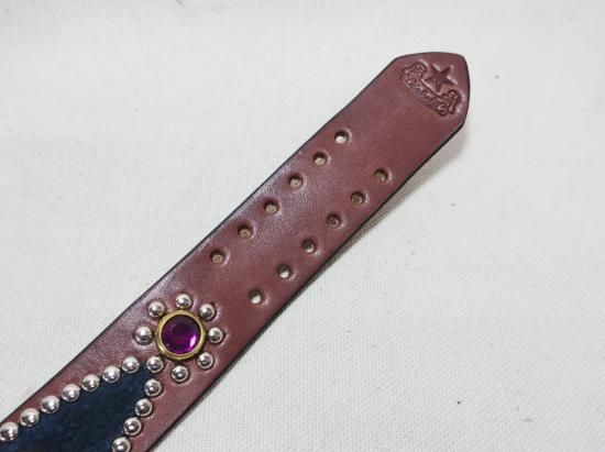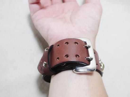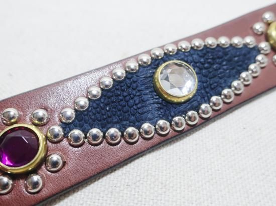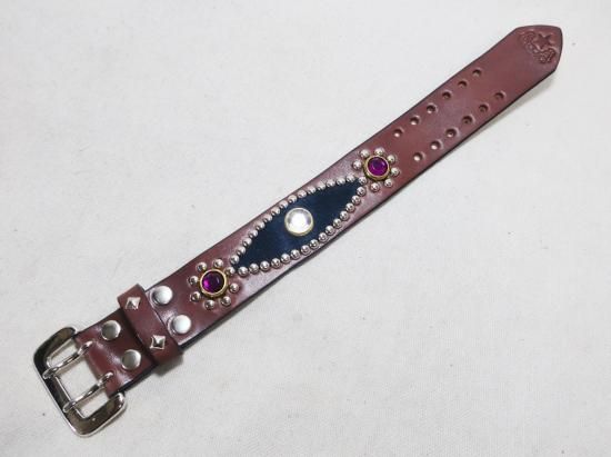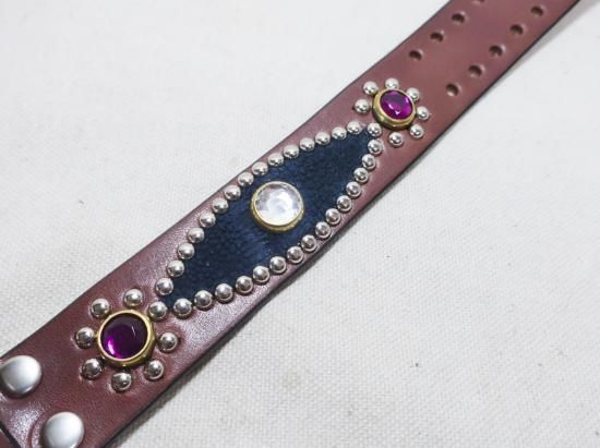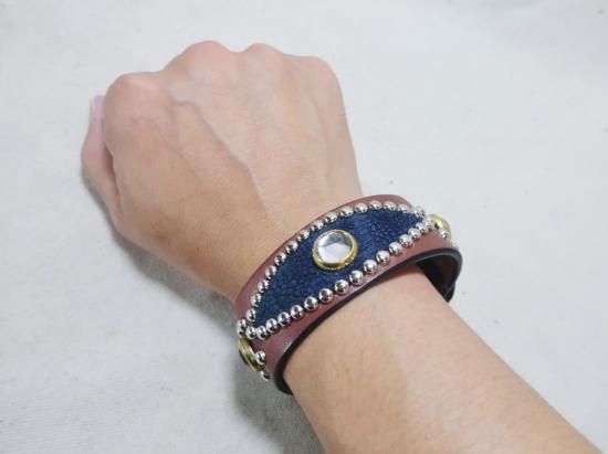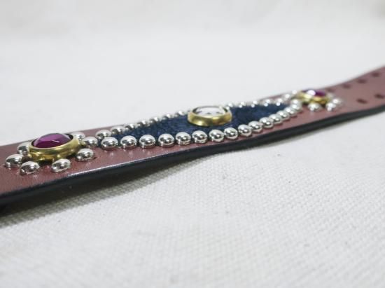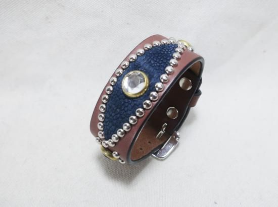サドルレザーに、エレファントレザー(ゾウ革)をインレイに使用したスタッズブレスレット。