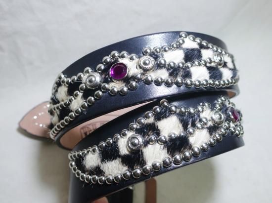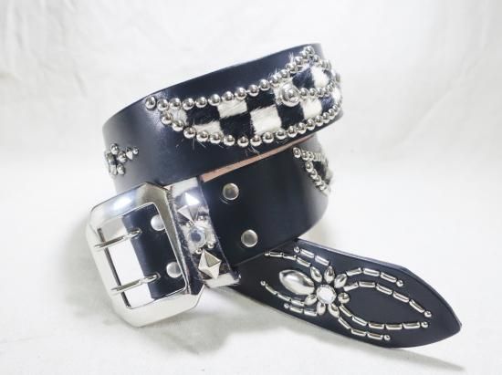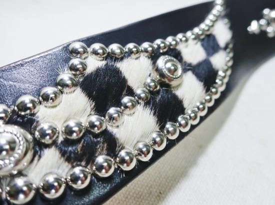 スタッズベルト/サドルレザー/スパイダー/ヘアカーフ・チェッカー