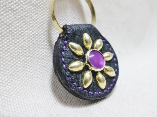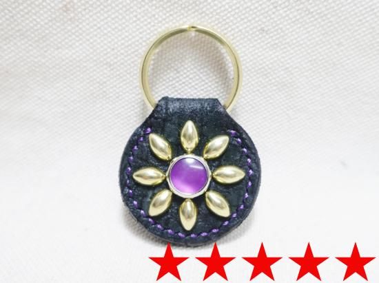 スタッズキーホルダー/カバ革/ハンドクラフト/革小物/キーホルダー/手縫い/キーリング/ヒポレザー/レザークラフト