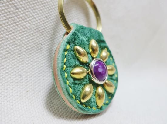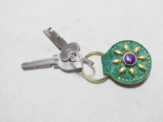 スタッズもくすみ、味わいの出るキーホルダーです。