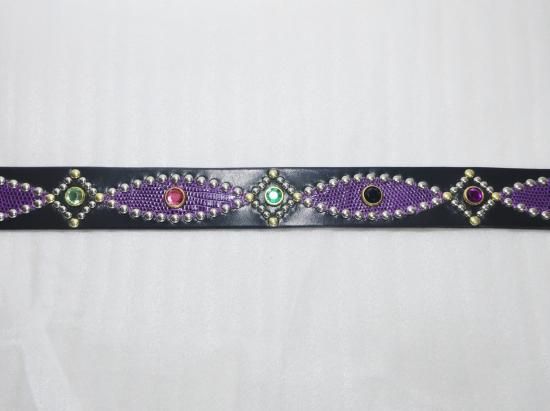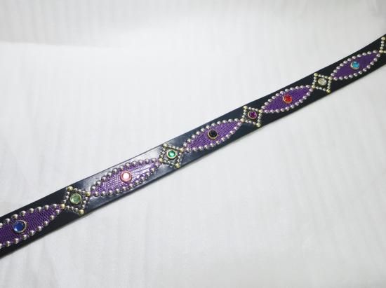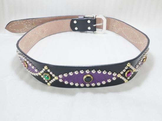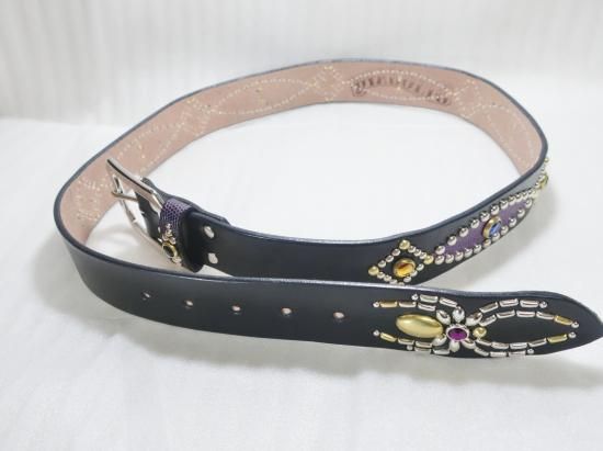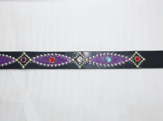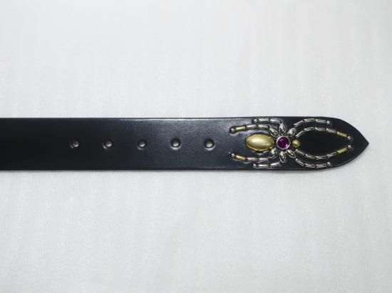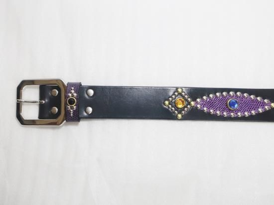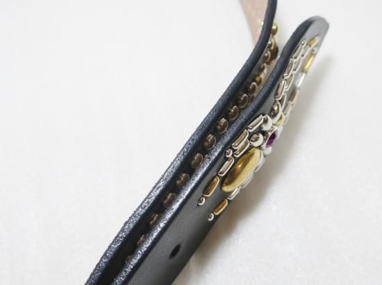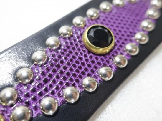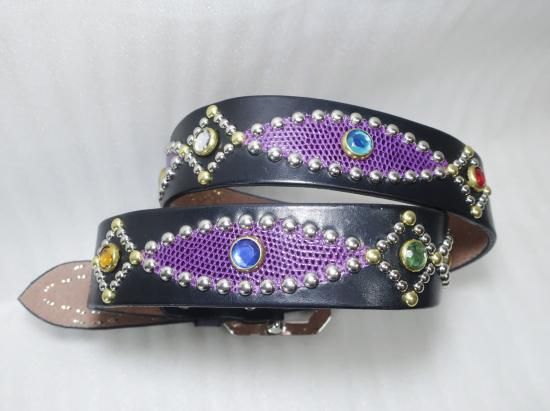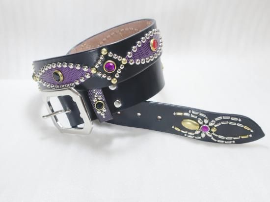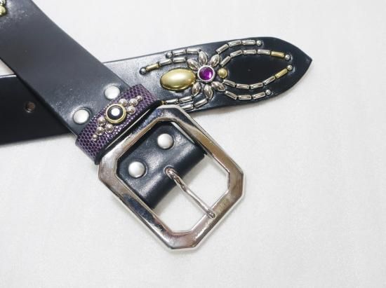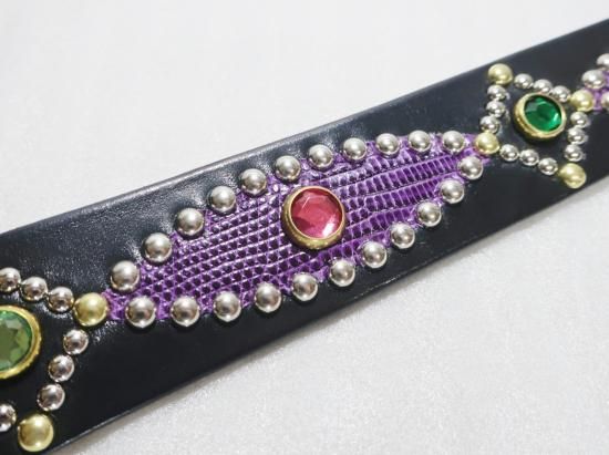 サドルレザーに、リザードを使用したスタッズベルト。