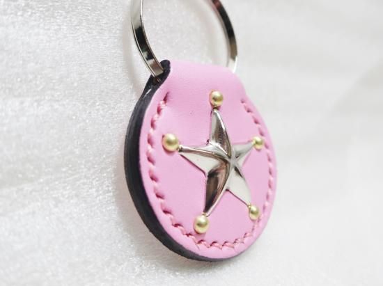 スタッズキーホルダー/サドルレザー・PINK