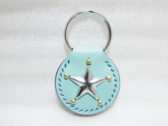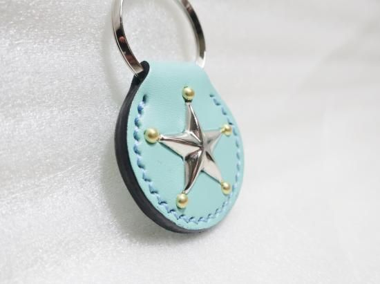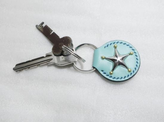 スタッズキーホルダー/サドルレザー・ミントグリーン