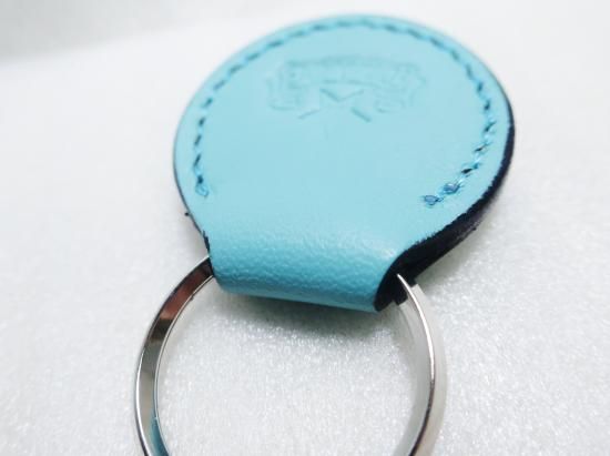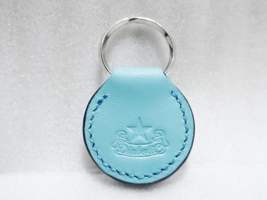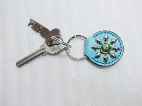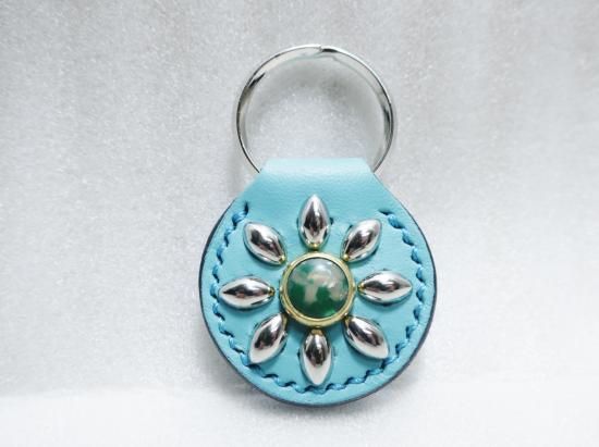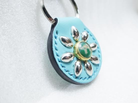 スタッズキーホルダー/サドルレザー・ターコイズブルー