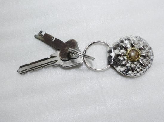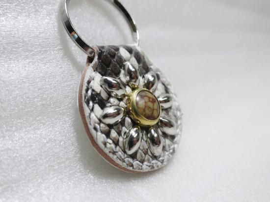 ■商品名:スタッズキーホルダー/ダイヤモンドパイソン(ヘビ革)