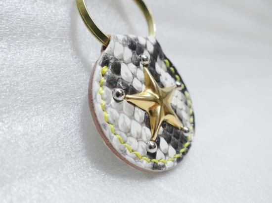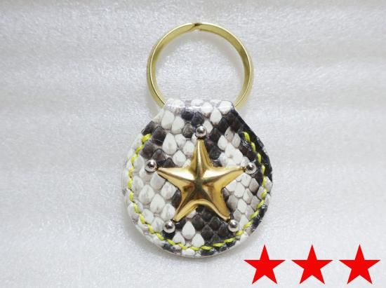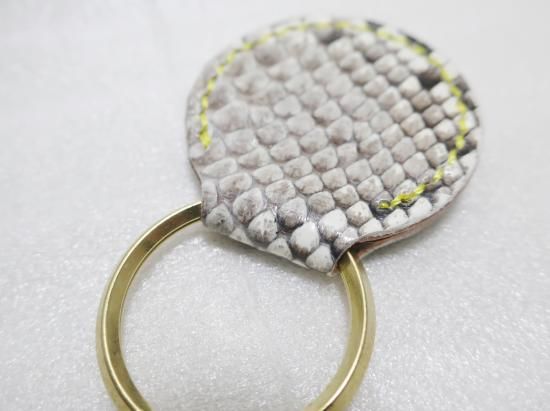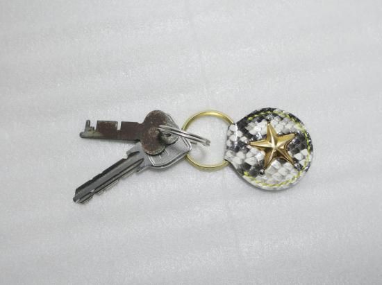 ダイヤモンドパイソン(ヘビ革)を使用したスタッズキーホルダー。