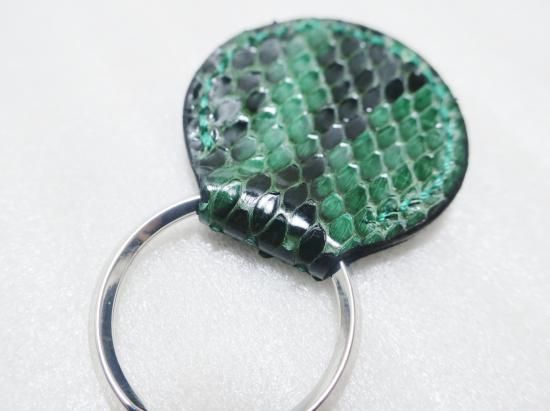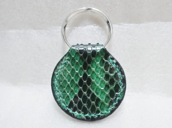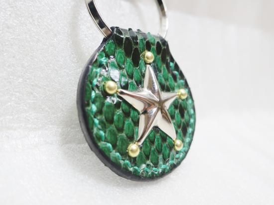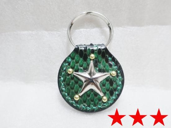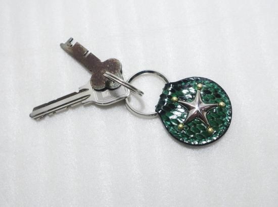 ダイヤモンドパイソン(ヘビ革)を使用したスタッズキーホルダー。