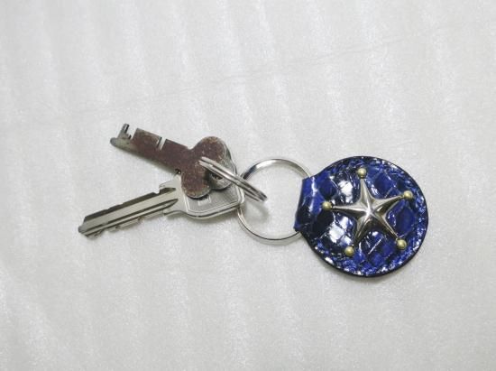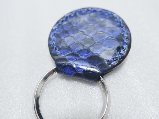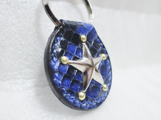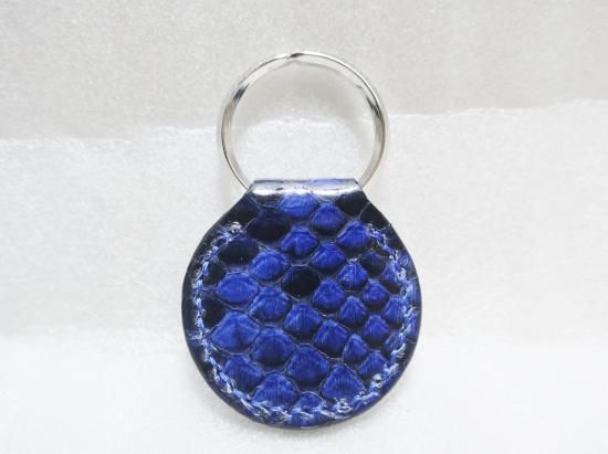 スタッズキーホルダー/ヘビ革・NAVY