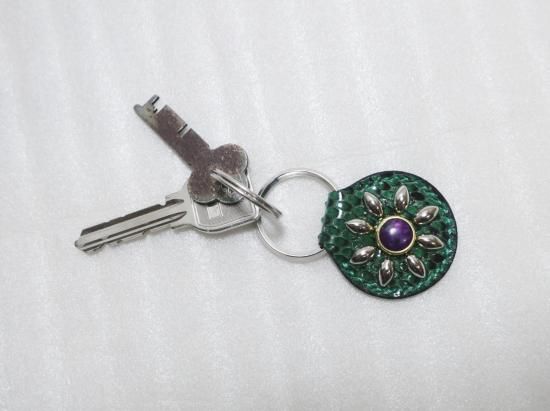 ダイヤモンドパイソン(ヘビ革)を使用したスタッズキーホルダー。