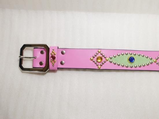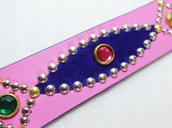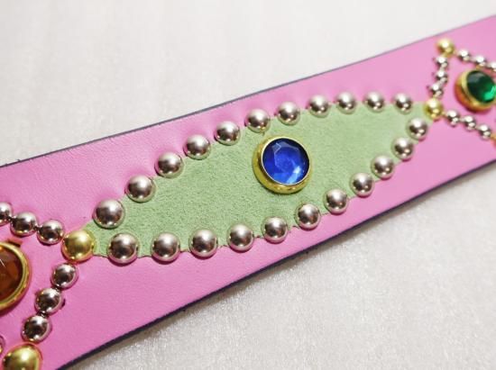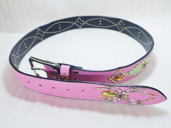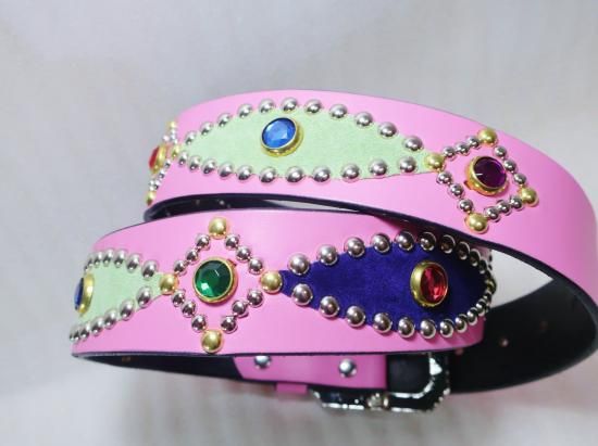サドルレザーに、スエードをインレイに使用したのスタッズベルト。